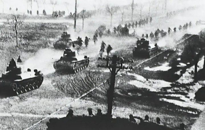 在攻打铁路局大楼,范汉杰的指令所时,坦克戎行互助步兵,硬生生撞开了大楼的大门,生擒了范汉杰的咨询长。