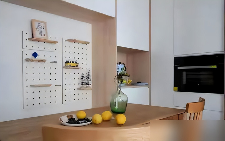 洞洞板挂厨具省下台面空间,高下台面想象切菜不弯腰,这些细节对泛泛下厨的东说念主来说即是救命稻草。